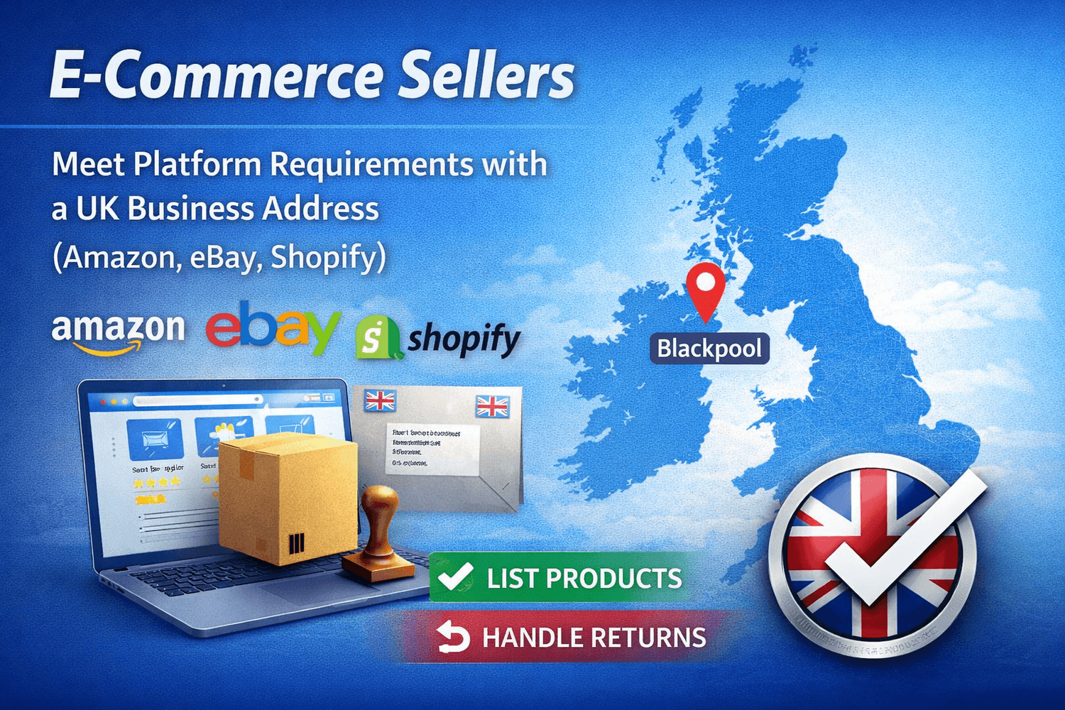 E-commerce platforms often require a UK business address for listings, returns, and customer trust. (e.g. Amazon, eBay, Shopify stores).
