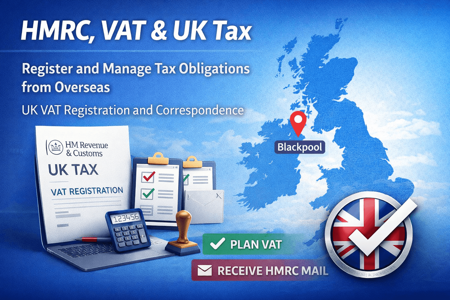 Businesses registering for UK tax obligations with HM Revenue and Customs including VAT registration and correspondence handling.