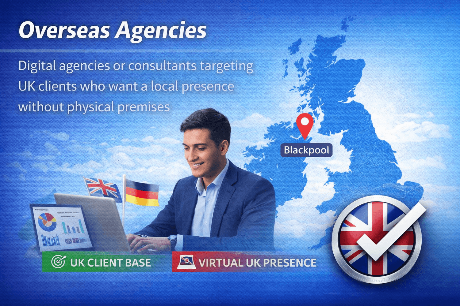 Digital agencies or consultants targeting UK clients who want a local presence without physical premises.