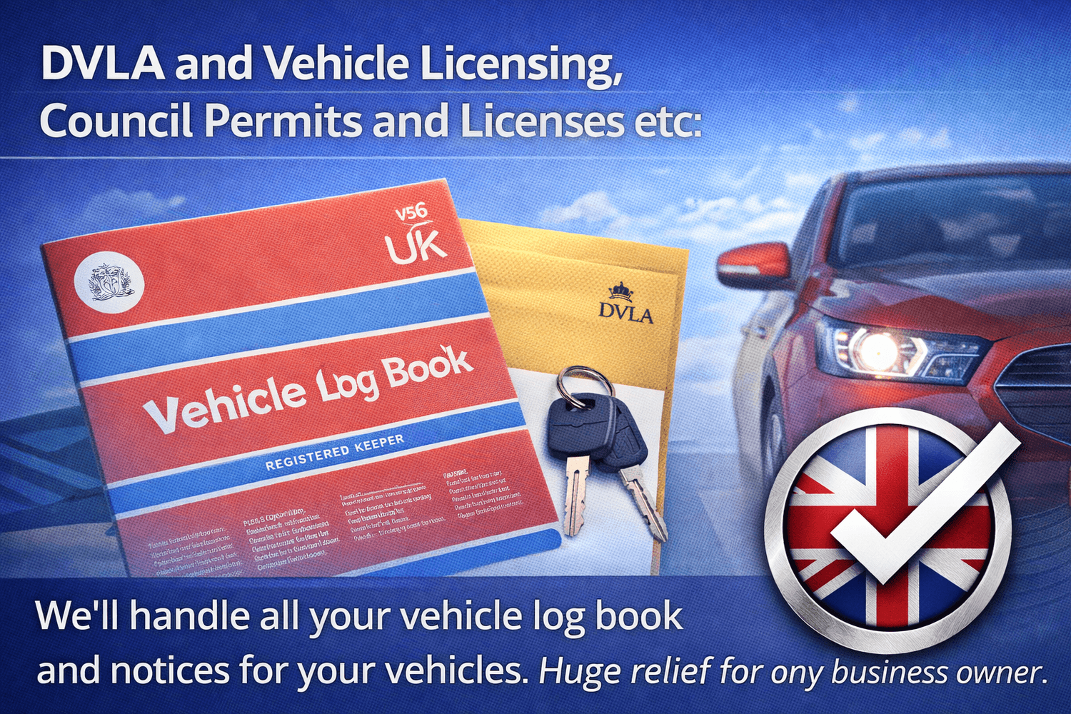 We'll handle all your vehicle log book and notices for your vehicles. Huge relief for any business owner.