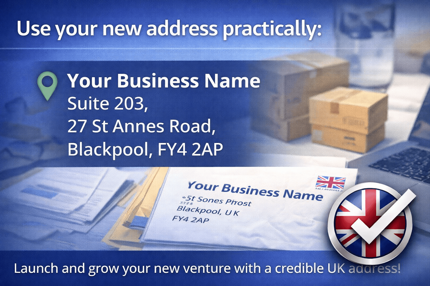 We DO NOT have a fancy London address... we're based in Blackpool, Lancashire. But it's not a virtual office; It's a real physical 'bricks and mortar' location run by trained professionals.