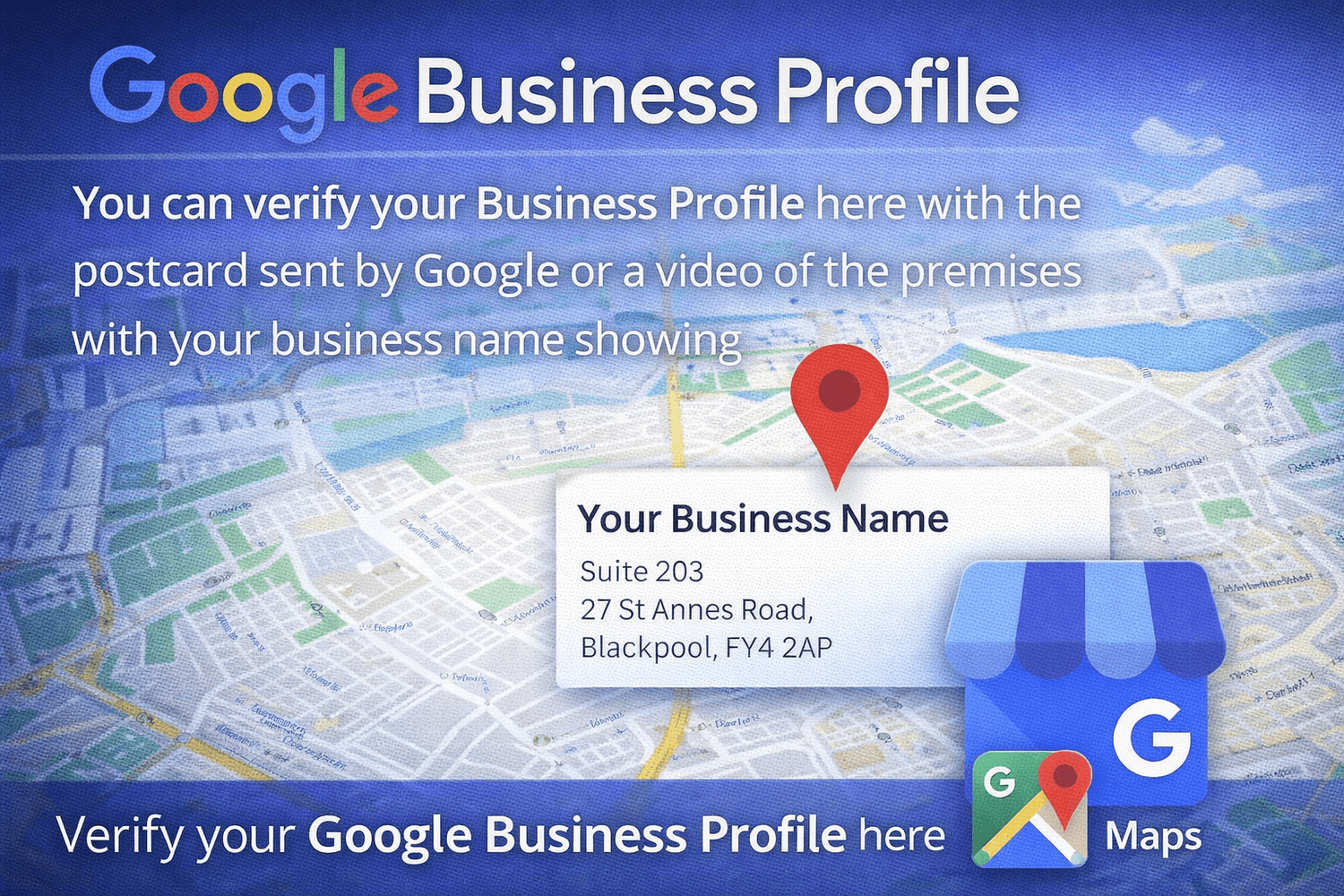 You can verify your GBP here with the postcard sent by Google or a video of the premises with your business name showing.